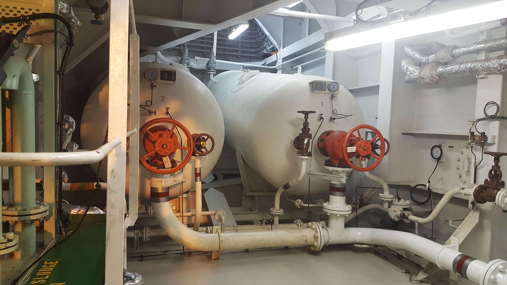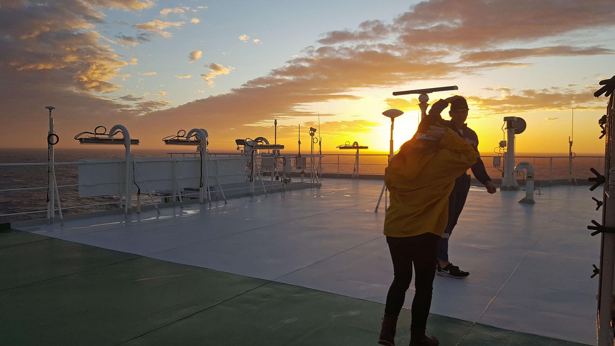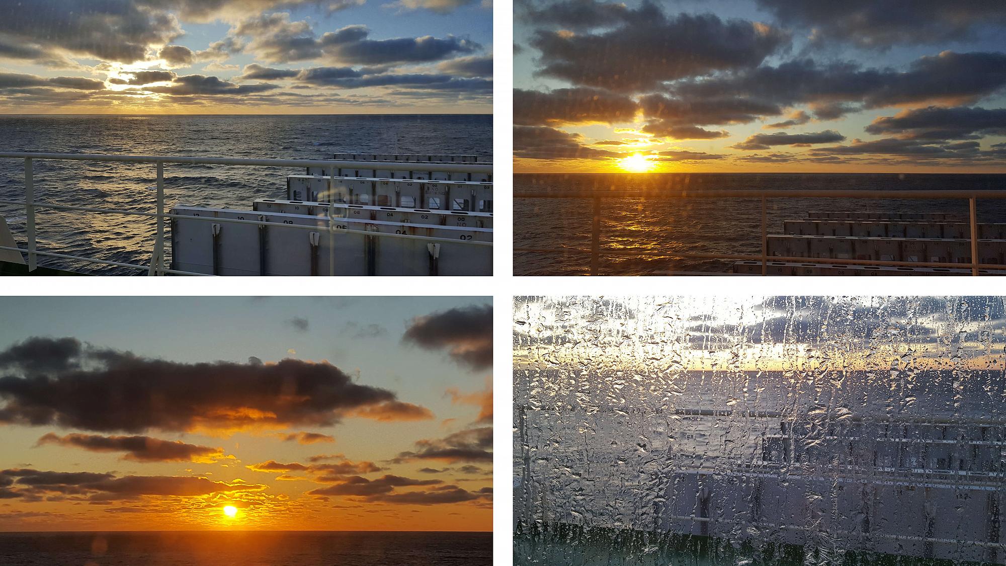 At the beginning I thought I will probably not enjoy the trip so much, but about half-way through, we asked the captain if we could see the engine room and we ended up getting a 2-hour tour around the whole ship. We saw the engine room, went to the very front of the ship where the anchor was, to the very end were the lifeboat was, to the top where we were almost blown away by the wind and to the decks with the loaded cargo that was not in containers, like cars etc. The crew told us that they do not know what’s in the containers, but they have a list of dangerous goods onboard. They were also carrying about a dozen or more Canadian military trucks (Viki was not amused ;D) that we were allowed to climb on and take a seat. The tour ended at the bridge where we watched the beautiful sunset.