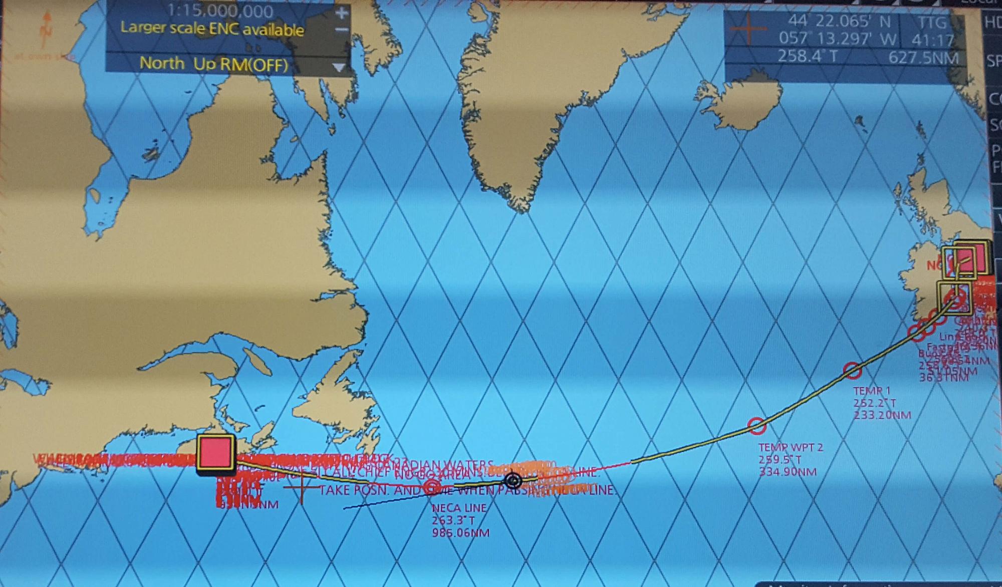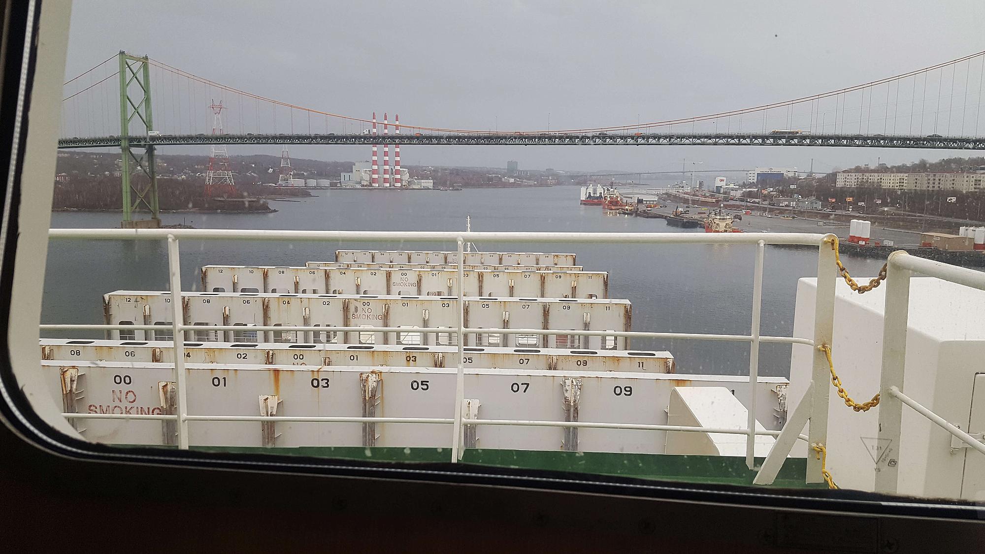 The tour made me more excited about the trip and the bridge was my new favourite spot on the ship, because it was interesting to see the crew at work and the view was so wide and far. The captain suggested we should come to the bridge when we enter the port of Halifax, so before breakfast when it was still dark I went there and the Canadian pilot, who leads the ship through the port, was already there giving commands to the crew. This was where Viki left the ship and I went back to the bridge when we were leaving the port.